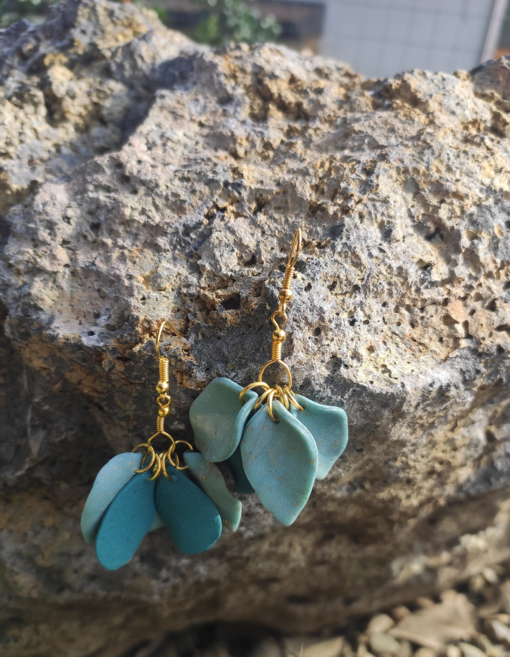 Orecchini a foglia di fimo, colore verde con brillantini oro
